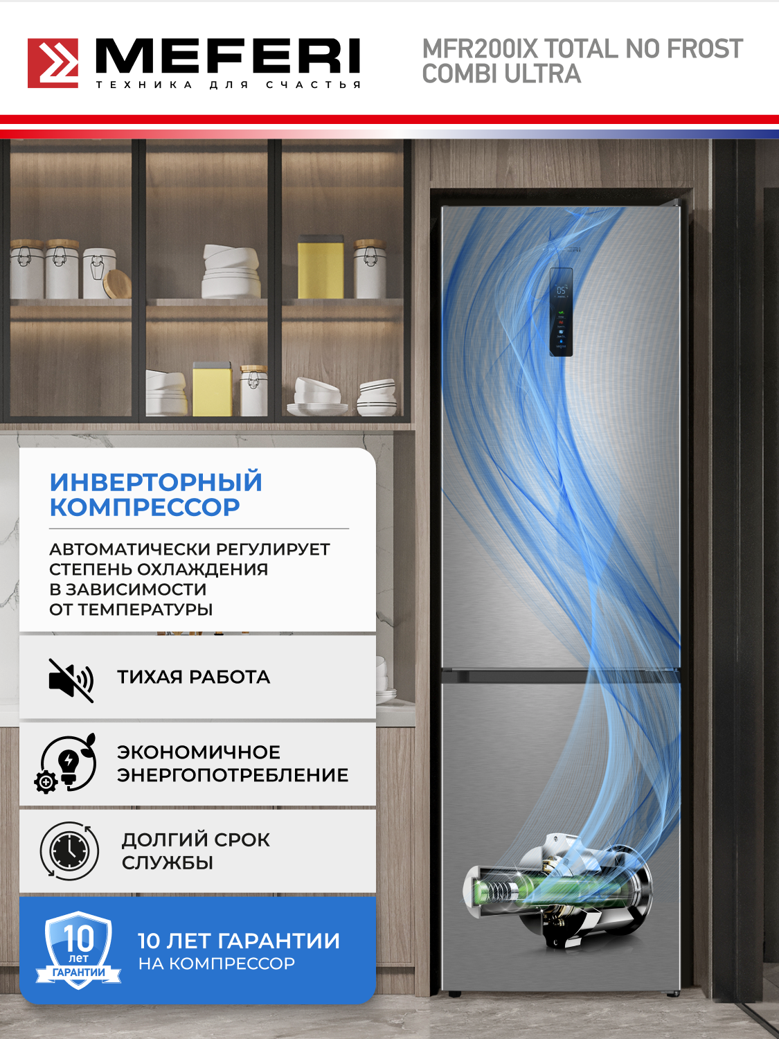 Купить Холодильник отдельностоящий с инвертором MEFERI MFR200IX TOTAL NO FROST COMBI ULTRA с доставкой по всей России.