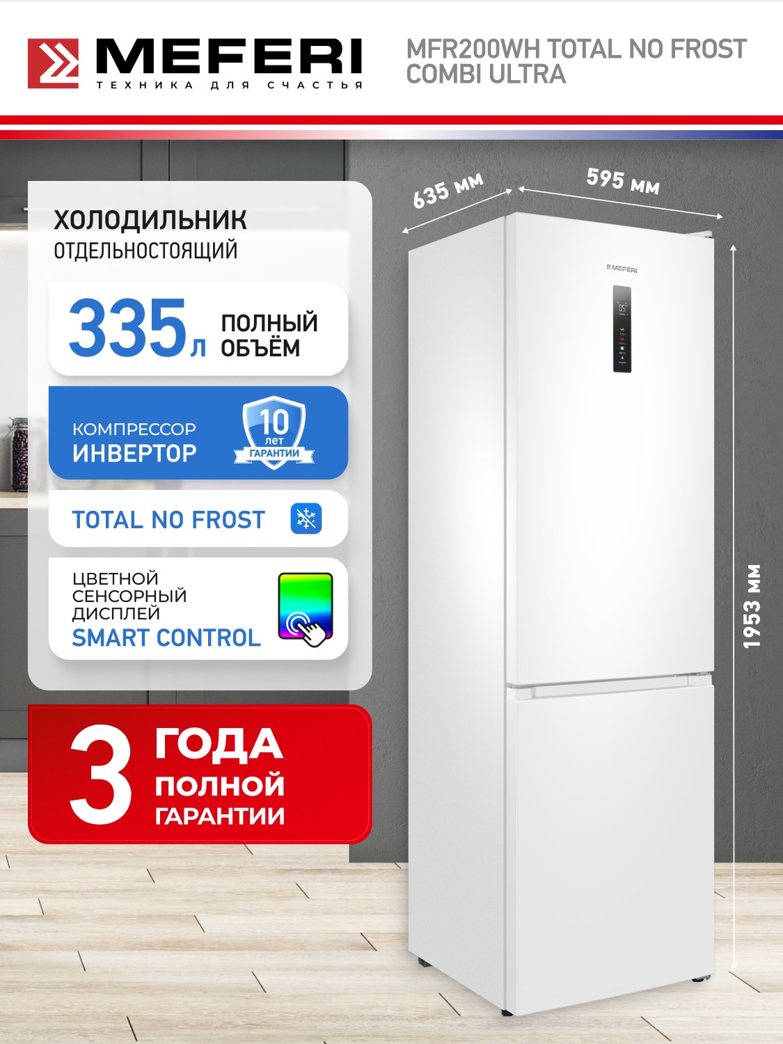 Холодильник отдельностоящий с инвертором MEFERI MFR200WH TOTAL NO FROST COMBI ULTRA: сравнение цен, характеристики, фото, актуальное наличие и цены.