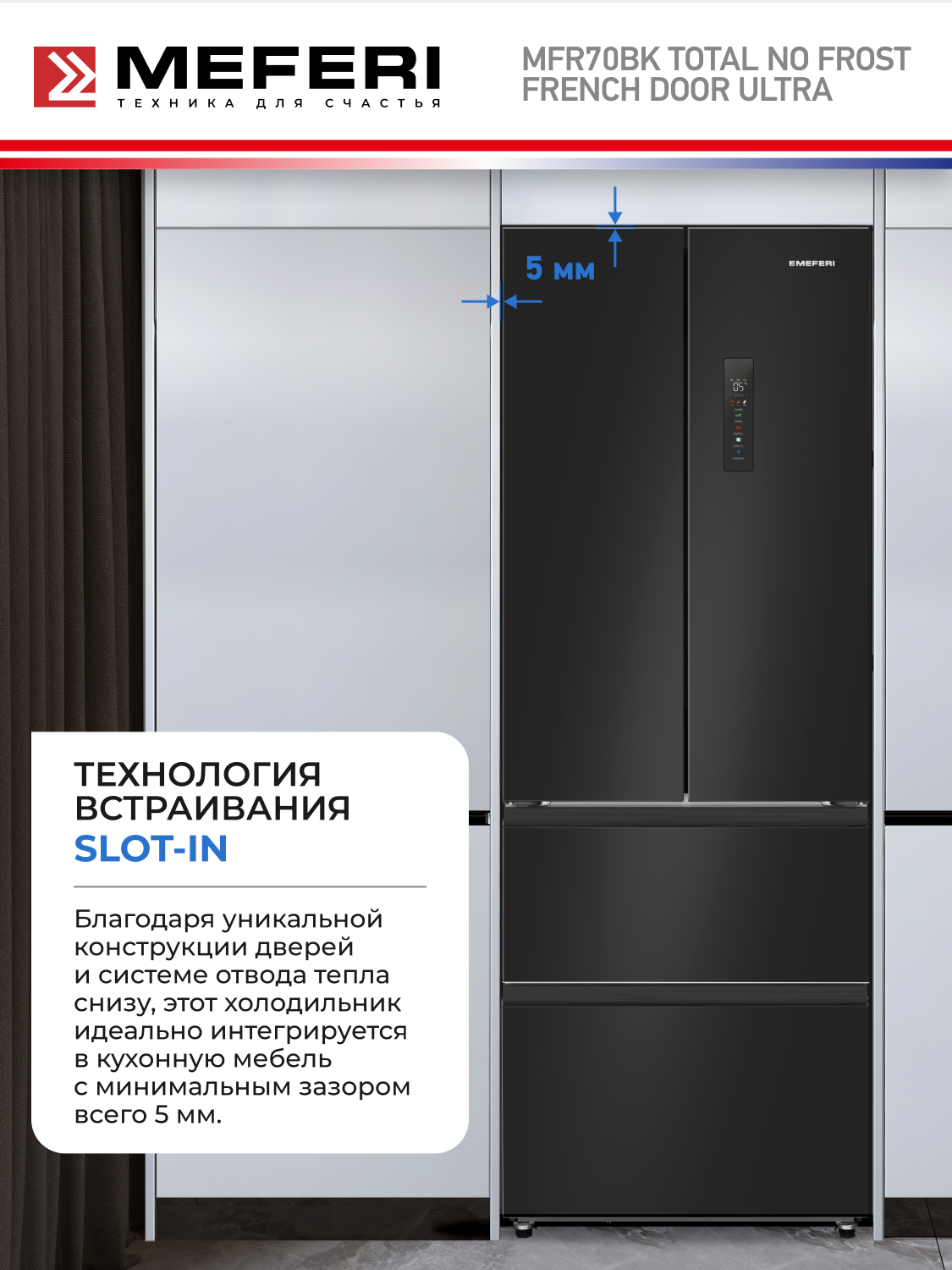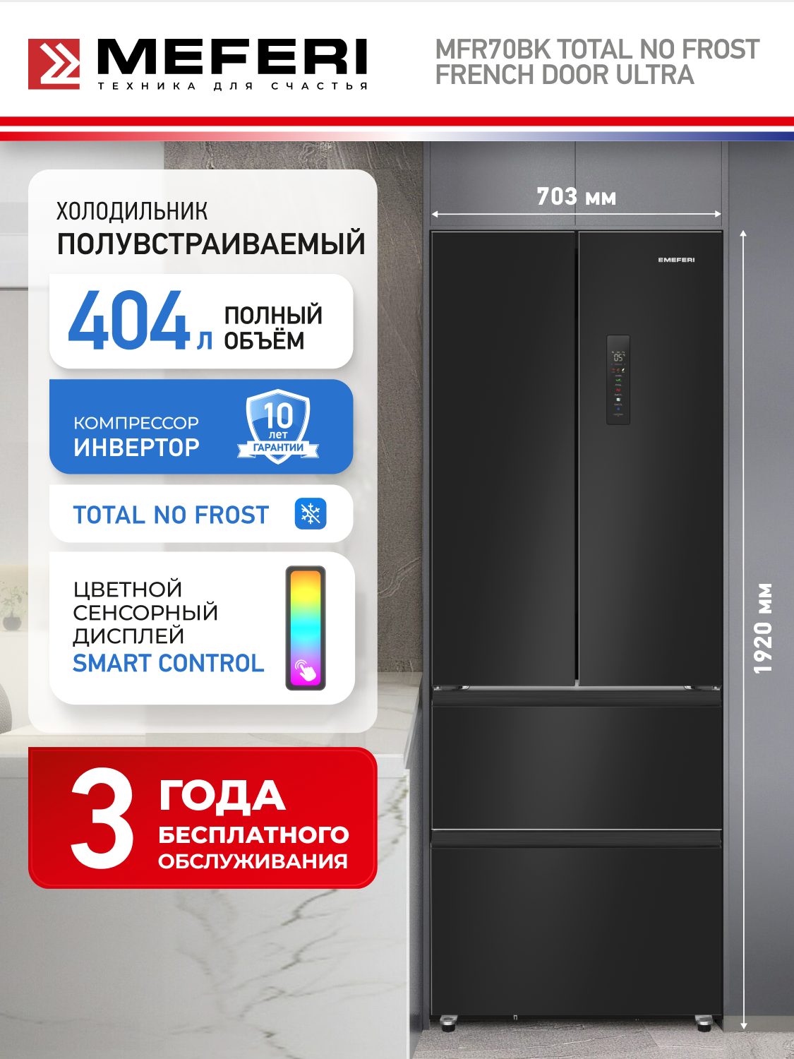 Холодильник отдельностоящий с инвертором MEFERI MFR70BK TOTAL NO FROST FRENCH DOOR ULTRA: сравнение цен, характеристики, фото, актуальное наличие и цены.