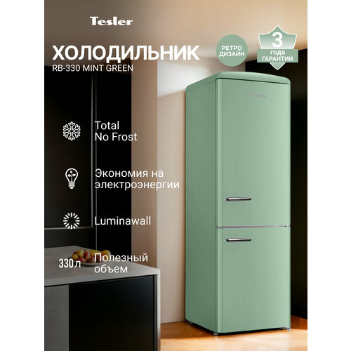 Купить Холодильник TESLER RB-330 MINT GREEN, с зоной свежести, инверторный компрессор, сенсорное управление, Total No Frost с доставкой по всей России.