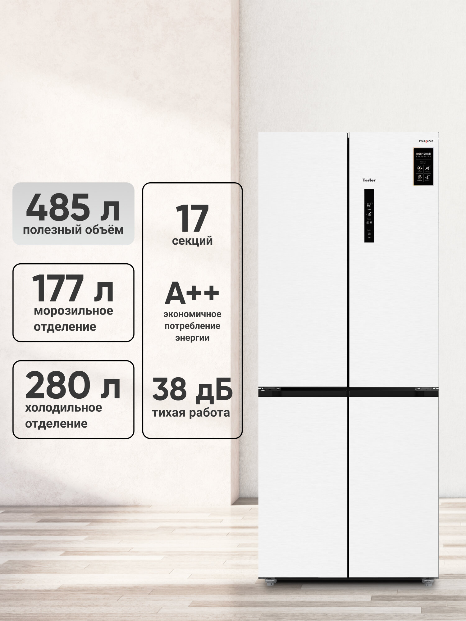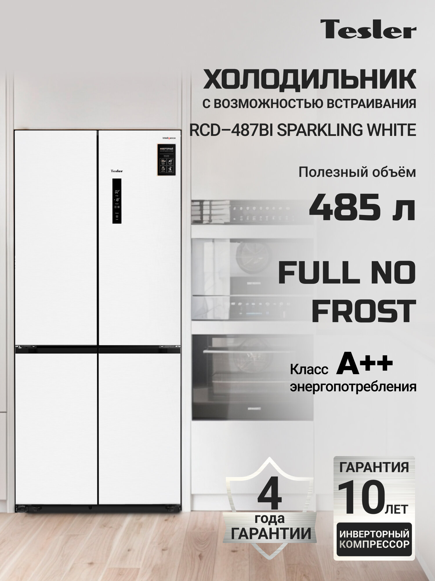 Холодильник Tesler RCD-487BI SPARKLING WHITE , No Frost, зона свежести, 487 л, морозильная камера снизу: сравнение цен, характеристики, фото, актуальное наличие и цены.