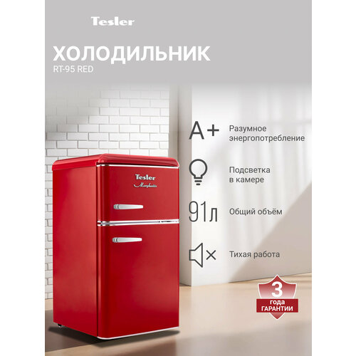 Купить Холодильник TESLER RT-95 RED, 91л, класс А+, морозилка сверху, ретро-стиль с доставкой по всей России. Холодильник TESLER RT-95 RED, 91л, класс А+, морозилка сверху, ретро-стиль: сравнение цен, характеристики, фото, актуальное наличие и цены.