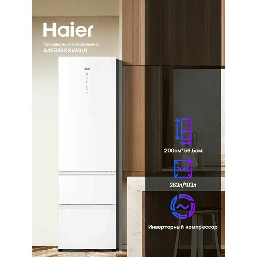 Купить Холодильник трехкамерный Haier A4F639CGWGU1 белый, 388 л, Total No Frost, инверторный компрессор, 59.5x200x68.2 см с доставкой по всей России. Холодильник трехкамерный Haier A4F639CGWGU1 белый, 388 л, Total No Frost, инверторный компрессор, 59.5x200x68.2 см: сравнение цен, характеристики, фото, актуальное наличие и цены.