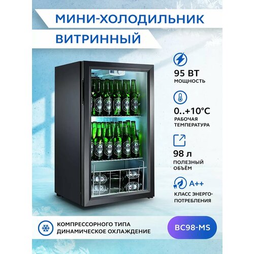Холодильный шкаф витринного типа GASTRORAG BC98-MS объемом 98 л предназначен для охлаждения и демонстрации продуктов и напитков. Данная модель поддерживает температуру в диапазоне 0.+10оС и выполнена из прочной окрашенной стали черного цвета. Работа устройства основана на компрессорном принципе охлаждения. Шкаф оснащен стеклянной дверцей и двумя полками-решетками, а также подсветкой.