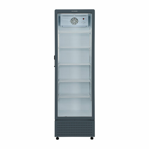 Модель имеет общий объем камеры 380 литров и полезный объем 360 литров. Распашная стеклянная дверь оснащена замком для сохранности товара и внутренней подсветкой для удобства использования.