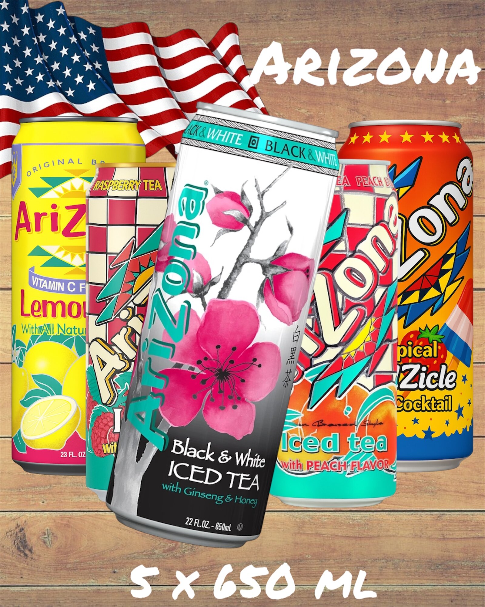 Произведенный в США, чай Arizona отличается высоким качеством и безупречным вкусом. Благодаря удобной упаковке в виде пяти банок по 650 мл, вы сможете наслаждаться этим удивительным напитком в любое время и в любом месте. Просто храните банки с чаем в холодильнике и наслаждайтесь неповторимым вкусом аризонского чая в любой момент.