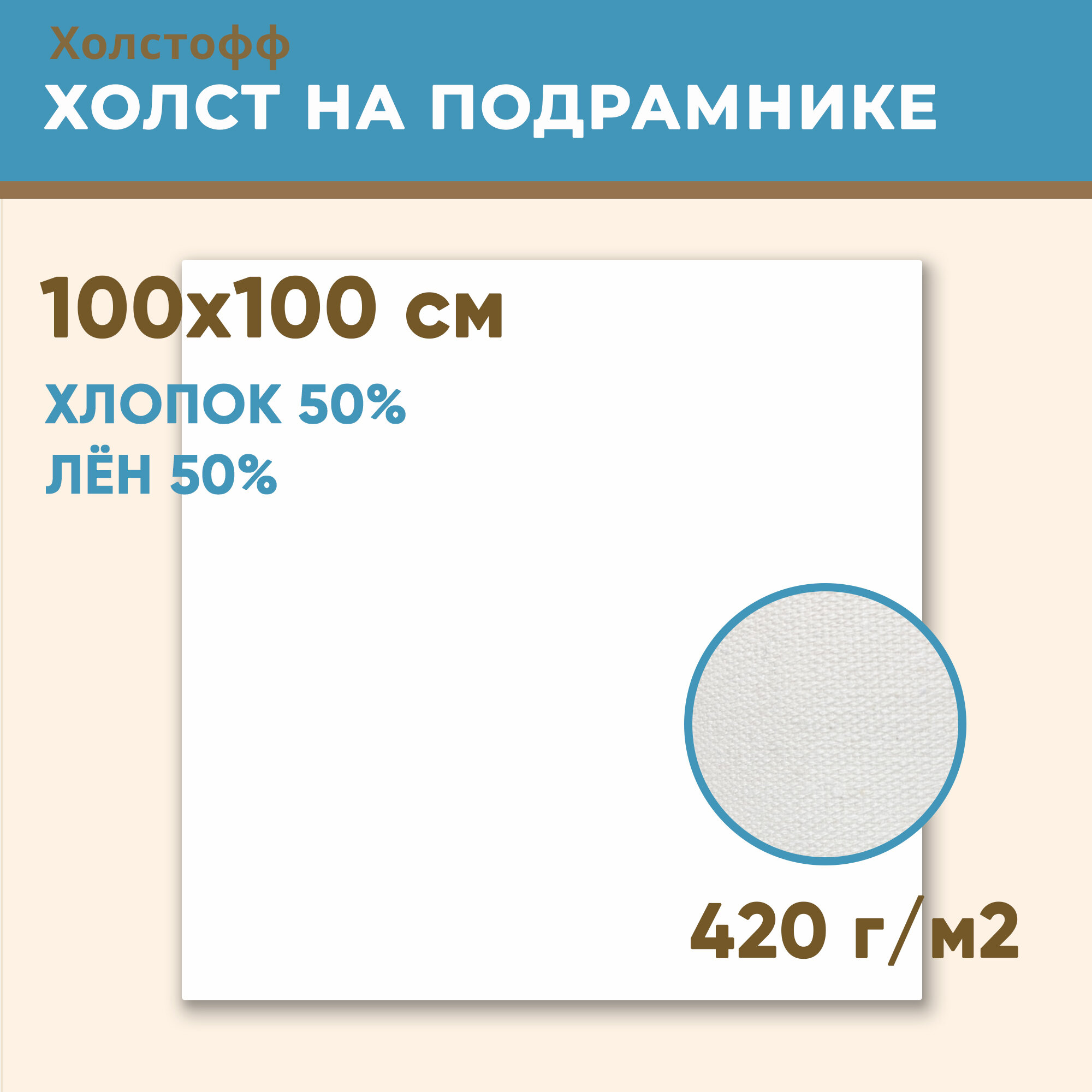 Холст грунтованный на подрамнике 100х100 см, 420 г/м2, лен 50%, хлопок 50%, мелкое зерно, Холстофф: сравнение цен, характеристики, фото, актуальное наличие и цены.