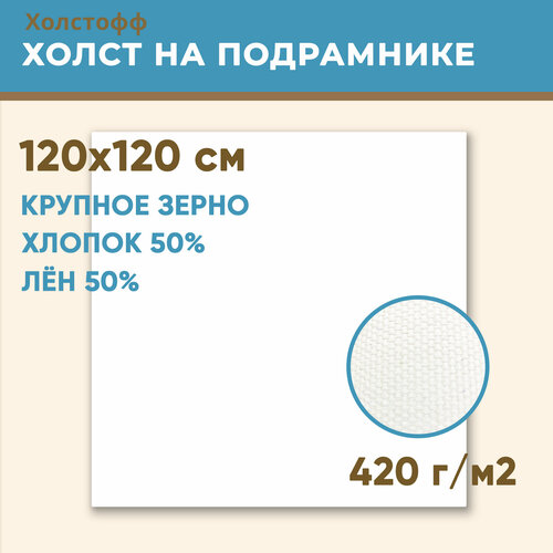 Холст грунтованный на подрамнике 120х120 см, 420 г/м2, лен 50%, хлопок 50%, крупное зерно, Холстофф: сравнение цен, характеристики, фото, актуальное наличие и цены.