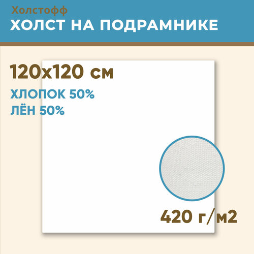 Холст грунтованный на подрамнике 120х120 см, 420 г/м2, лен 50%, хлопок 50%, мелкое зерно, Холстофф: сравнение цен, характеристики, фото, актуальное наличие и цены.