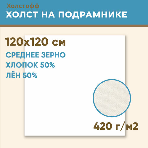 Холст грунтованный на подрамнике 120х120 см, 420 г/м2, лен 50%, хлопок 50%, среднее зерно, Холстофф: сравнение цен, характеристики, фото, актуальное наличие и цены.
