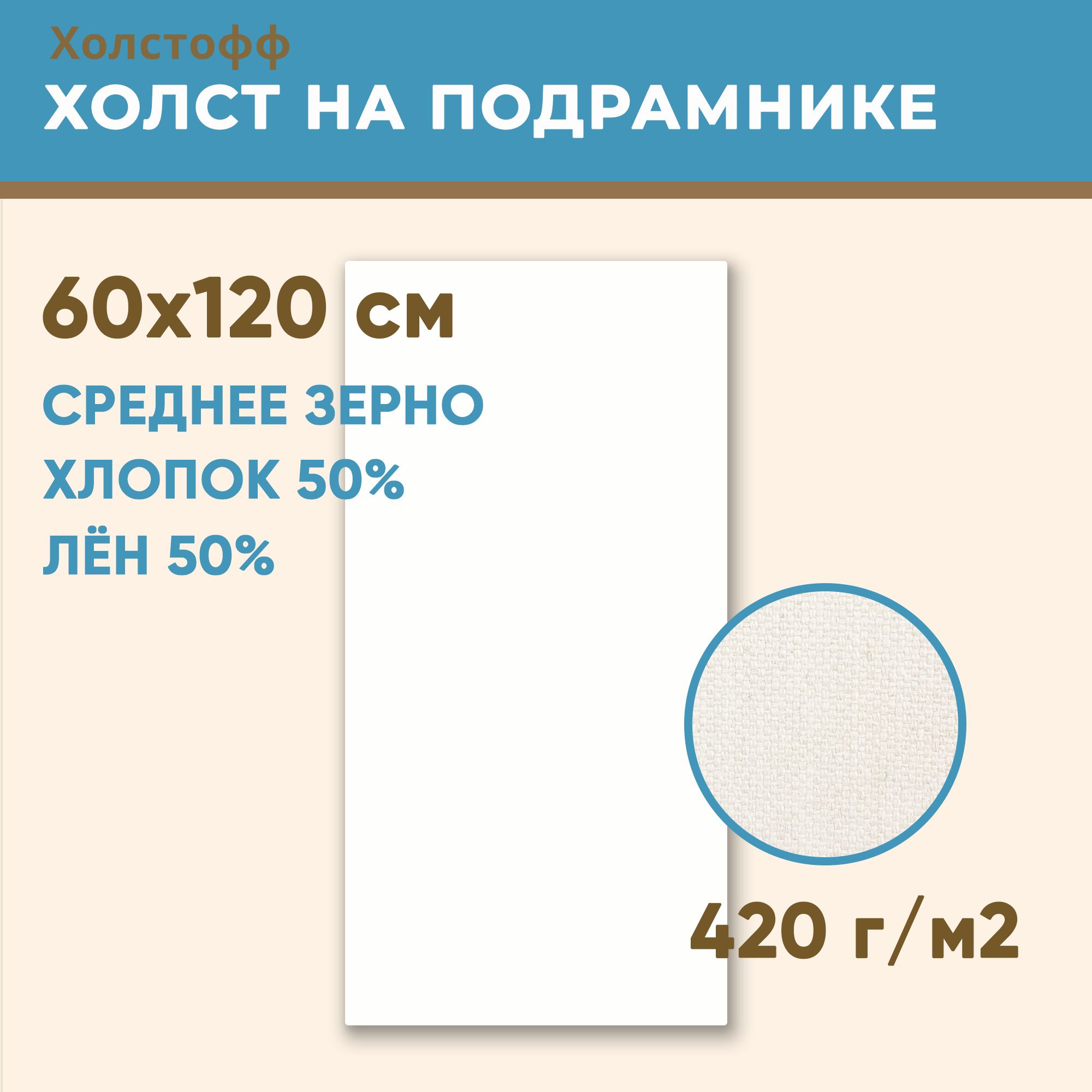 Холст грунтованный на подрамнике 60х120 см, 420 г/м2, лен 50%, хлопок 50%, среднее зерно, Холстофф: сравнение цен, характеристики, фото, актуальное наличие и цены.