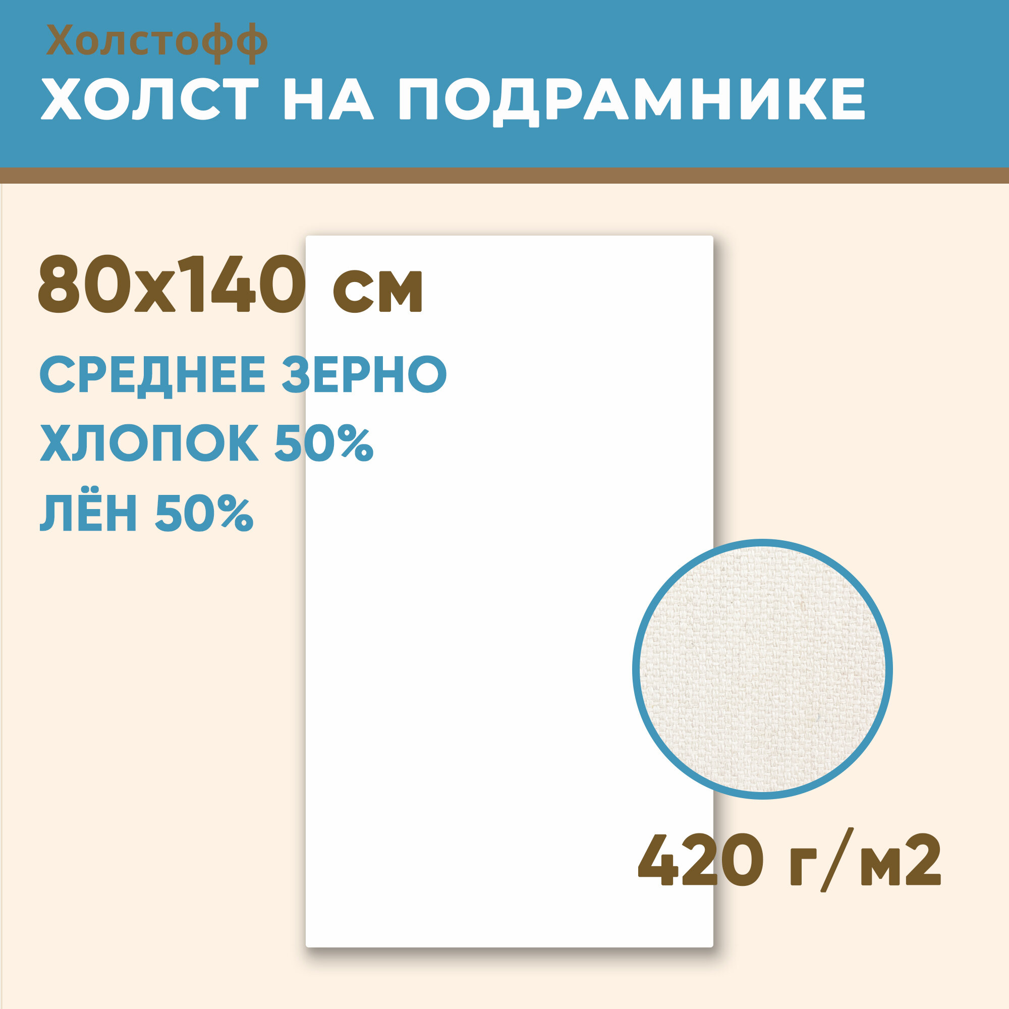 Купить Холст грунтованный на подрамнике 80х140 см, 420 г/м2, лен 50%, хлопок 50%, среднее зерно, Холстофф с доставкой по всей России. Холст грунтованный на подрамнике 80х140 см, 420 г/м2, лен 50%, хлопок 50%, среднее зерно, Холстофф: сравнение цен, характеристики, фото, актуальное наличие и цены.
