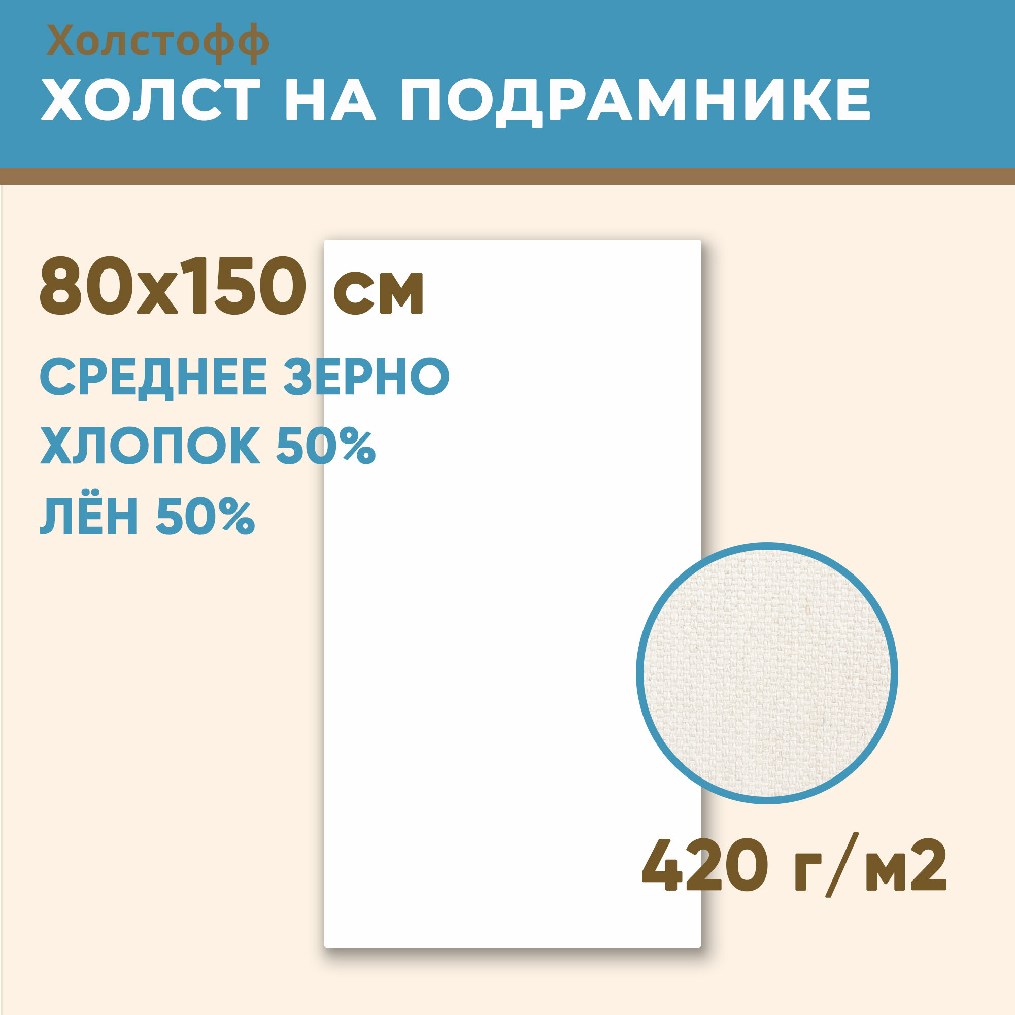 Купить Холст грунтованный на подрамнике 80х150 см, 420 г/м2, лен 50%, хлопок 50%, среднее зерно, Холстофф с доставкой по всей России. Холст грунтованный на подрамнике 80х150 см, 420 г/м2, лен 50%, хлопок 50%, среднее зерно, Холстофф: сравнение цен, характеристики, фото, актуальное наличие и цены.