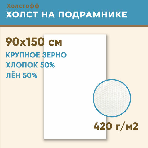 Холст грунтованный на подрамнике 90х150 см, 420 г/м2, лен 50%, хлопок 50%, крупное зерно, Холстофф: сравнение цен, характеристики, фото, актуальное наличие и цены.