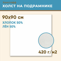 Холст грунтованный на подрамнике 90х90 см, 420 г/м2, лен 50%, хлопок 50%, мелкое зерно, Холстофф: сравнение цен, характеристики, фото, актуальное наличие и цены.