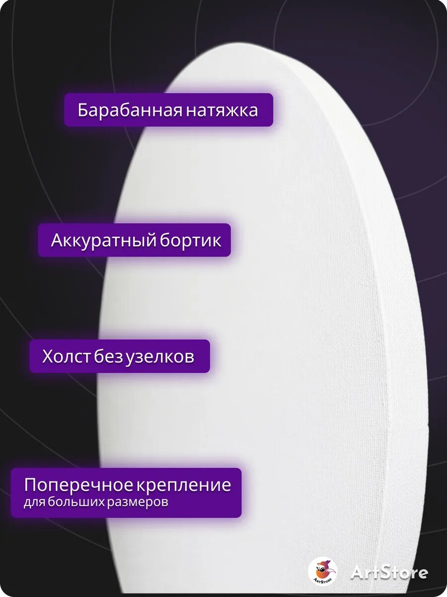 Холст круглый 70 см хлопковый с плотностью 380 г - идеальный выбор для художников и любителей рукоделия. Продукт от бренда ArtStoreSPB отличается высоким качеством материалов и вниманием к деталям, что обеспечивает удобство в использовании и долговечность. Холст изготовлен из натурального хлопка, что делает его идеальным для работы акварелью, маслом и другими видами живописи. Барабанная натяжка обеспечивает ровную поверхность для рисования, а отсутствие складок на торцах позволяет легко и быстро начать работу. Подрамник обеспечивает дополнительную поддержку и защиту холста, делая его более устойчивым к повреждениям. Этот холст является отличным выбором для профессионалов и начинающих, стремящихся к созданию высококачественных произведений искусства.