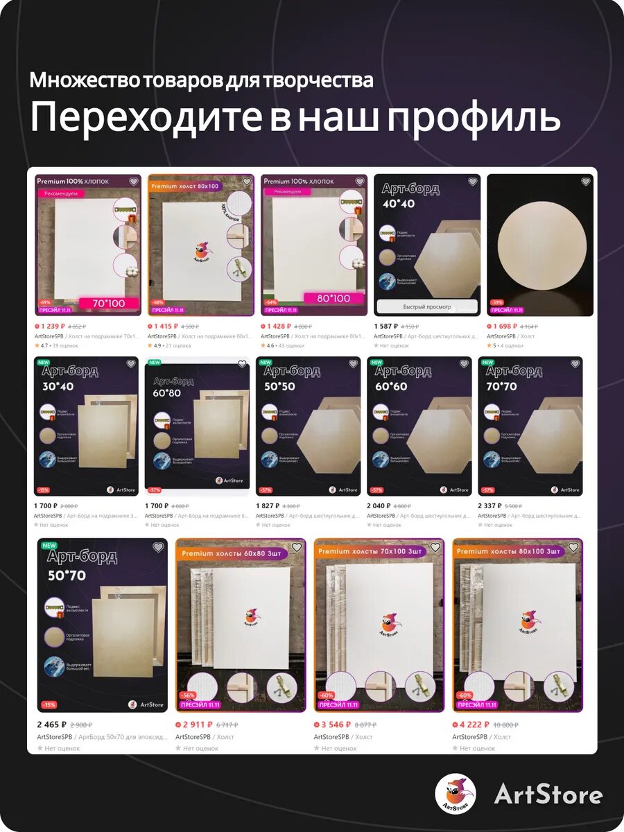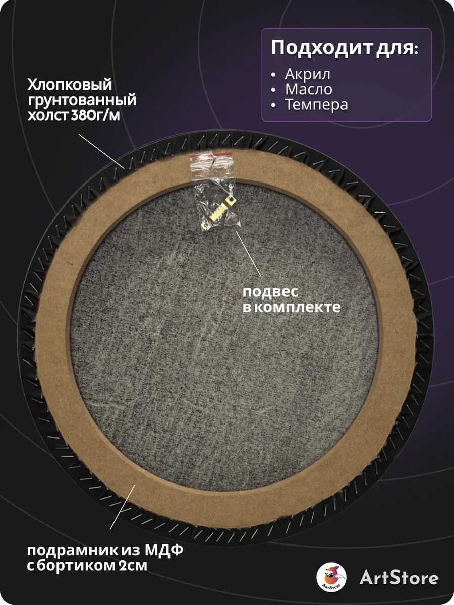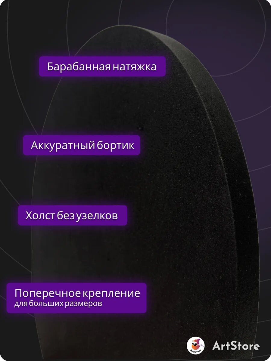 Холст черный круглый 95 см хлопковый с плотностью 380 г - идеальный выбор для художников и любителей рукоделия. Продукт от бренда ArtStoreSPB отличается высоким качеством материалов и вниманием к деталям, что обеспечивает удобство в использовании и долговечность. Холст изготовлен из натурального хлопка, что делает его идеальным для работы акварелью, маслом и другими видами живописи. Барабанная натяжка обеспечивает ровную поверхность для рисования, а отсутствие складок на торцах позволяет легко и быстро начать работу. Подрамник обеспечивает дополнительную поддержку и защиту холста, делая его более устойчивым к повреждениям. Этот холст является отличным выбором для профессионалов и начинающих, стремящихся к созданию высококачественных произведений искусства.