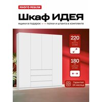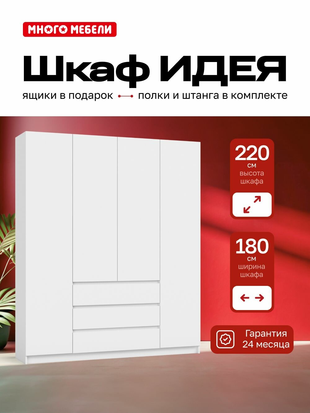 Купить Много мебели, Шкаф распашной Идея, 180х51х220, 4-дверный с ящиками, белый с доставкой по всей России. Много мебели, Шкаф распашной Идея, 180х51х220, 4-дверный с ящиками, белый: сравнение цен, характеристики, фото, актуальное наличие и цены.