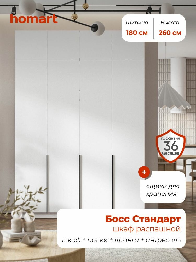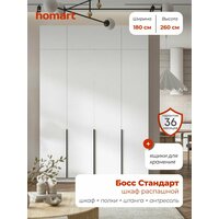 Homart, Шкаф распашной, 180х53х260 см, 4х дверный с ящиками и антресолью, белый: сравнение цен, характеристики, фото, актуальное наличие и цены.