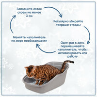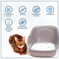 Силикагелевый наполнитель для кошачьих туалетов с ароматом морозной свежести. Мгновенно поглощает жидкость и запахи, благодаря своим абсорбирующим свойствам, блокируя их навсегда, сохраняя свою первоначальную форму. Антибактериальный, гипоаллергенный. Экономичен в использовании, не требует ежедневной смены. Можно использовать в кошачьих лотках с решёткой. Способ применения: Насыпьте в лоток наполнитель слоем не менее 3 см. Регулярно убирайте из лотка твердые отходы. Один раз в день перемешивайте наполнитель, чтобы активизировать его работу. Не реже одного раза в месяц полностью меняйте силикагелевый наполнитель. Если в лоток ходит 2 и более кошек, рекомендуем менять наполнитель чаще. Не рекомендуется использовать канализацию для утилизации силикагелевого наполнителя.