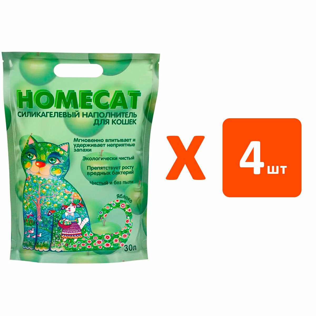 HOMECAT яблоко наполнитель силикагелевый для туалета кошек (30 л х 4 шт): сравнение цен, характеристики, фото, актуальное наличие и цены.
