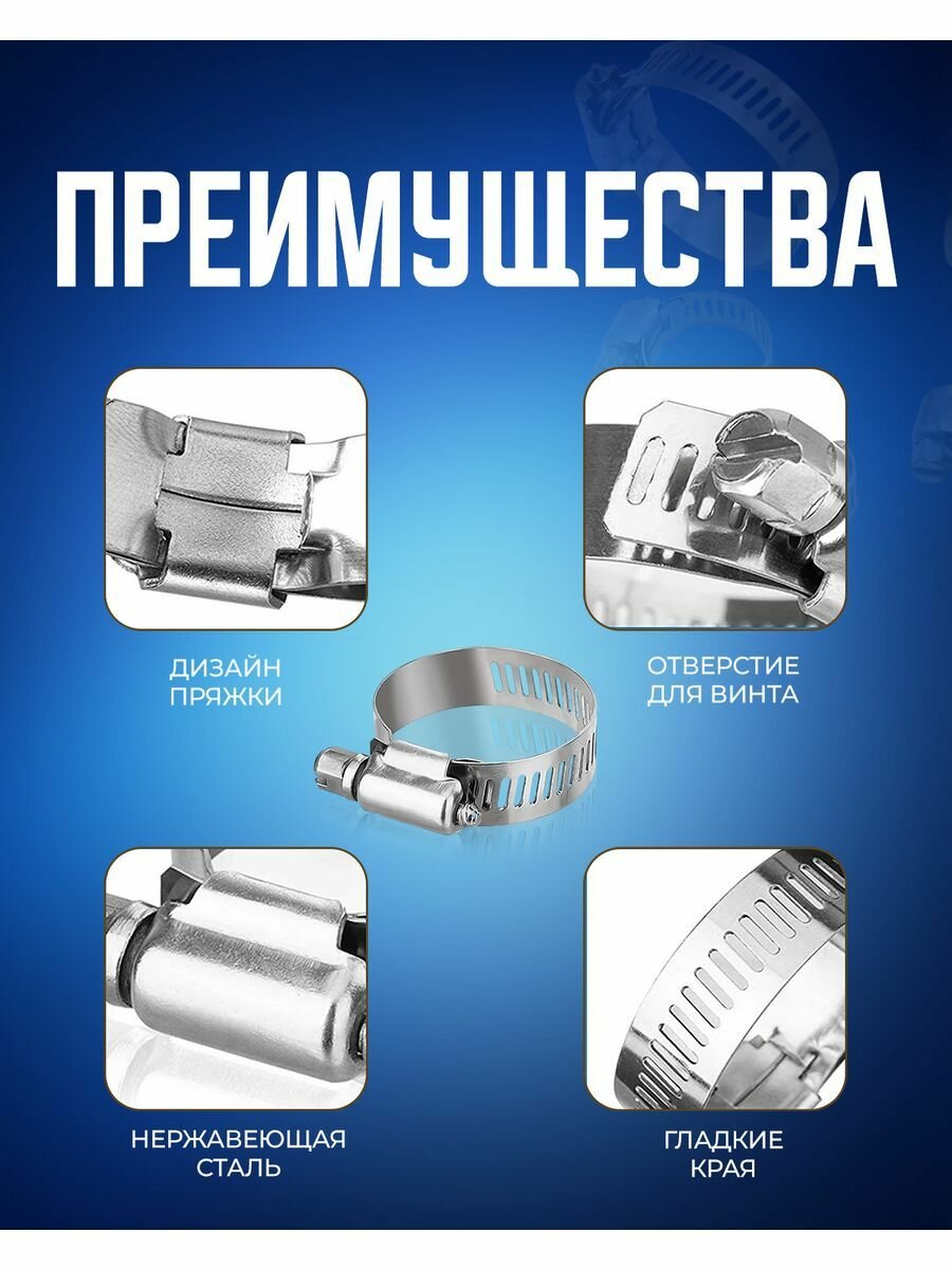 Пластиковый кейс обеспечивает удобное хранение и транспортировку хомутов, а также защищает их от пыли и повреждений. Набор идеально подходит для использования в гараже, мастерской, на даче, на производстве или в других местах, где требуется надежное крепление различных объектов.