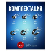 Пластиковый кейс обеспечивает удобное хранение и транспортировку хомутов, а также защищает их от пыли и повреждений. Набор идеально подходит для использования в гараже, мастерской, на даче, на производстве или в других местах, где требуется надежное крепление различных объектов.