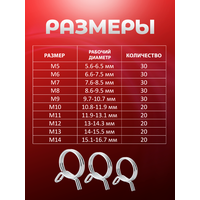 Хомут самозажимной из нержавеющей стали — это универсальный инструмент, который широко применяется в различных отраслях промышленности, строительстве и быту. Этот простой, но очень полезный механизм служит для крепления и закрепления объектов, для сжатия и фиксации труб и т. д. Хомут для шлангов состоит из нержавеющей стали, что обеспечивает высокое качество скрепления. Популярность пружинных хомутов объясняется их простотой использования и универсальностью. Они могут использоваться как для профессиональных целей, так и для бытовых нужд. В строительстве и монтаже они используются для закрепления проводов, труб, шлангов, тросов, кабелей и других элементов конструкции. Хомуты самозажимные оцинкованные не подвержены воздействию внешней среды. Они долговечны и устойчивы к ультрафиолету, агрессивным средам, высоким и низким температурам. Пружинный хомут широко применяется при сборке различных агрегатов, для крепления трубопроводов высокого давления, а также используется при сборке двигателей и различных силовых агрегатов. Хомуты самозажимные из нержавеющей стали пригодны для крепления различной арматуры, кабелей, трубопроводов и проводов, шлангов и т. п. Набор хомутов в пластиковом кейсе предназначен для использования в различных бытовых и профессиональных целях. В комплект входит 10 размеров хомутов, которые можно использовать для крепления различных предметов, проводов, шлангов и труб. Хомуты легко регулируются и обеспечивают надежное крепление. Минимальный диаметр: 5.6-6.5 мм Максимальный диаметр: 15.1-16.7 мм
