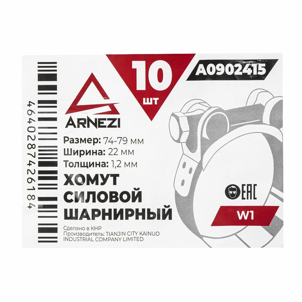 Купить Хомут силовой шарнирный 74-79 / 22 W1 набор хомутов 10 шт A0902415 ARNEZI с доставкой по всей России.