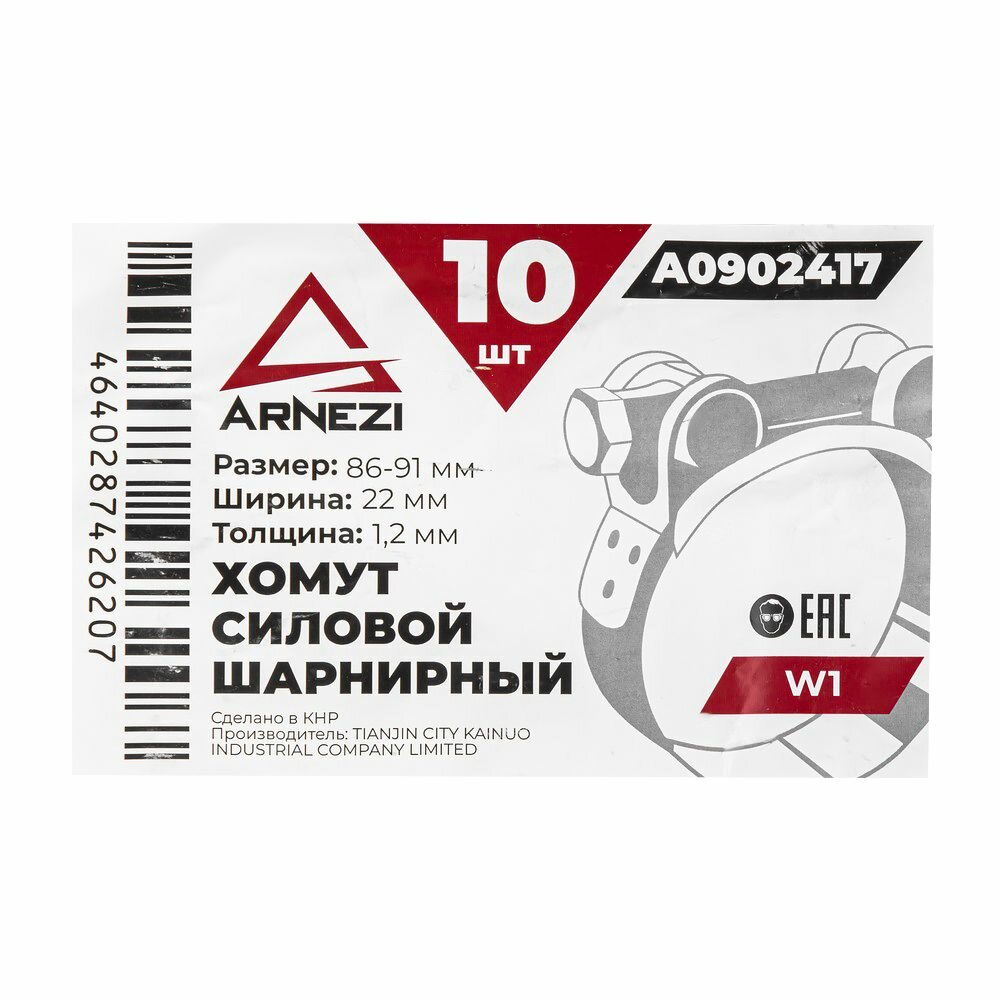Купить Хомут силовой шарнирный 86-91 / 22 W1 набор хомутов 10 шт A0902417 ARNEZI с доставкой по всей России.