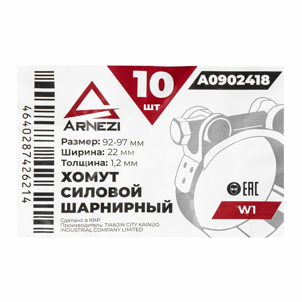 Купить Хомут силовой шарнирный 92-97 / 22 W1 набор хомутов 10 шт A0902418 ARNEZI с доставкой по всей России.