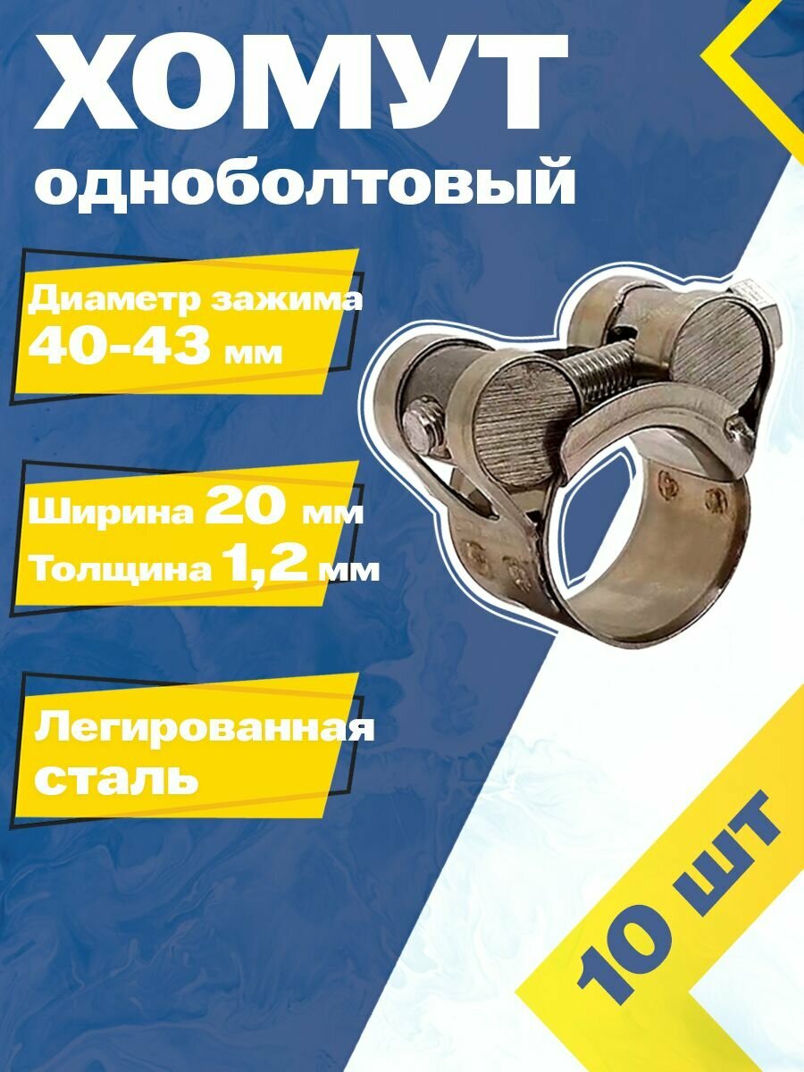 Хомут силовой шарнирный MGF 40-43/20 мм W5 (Одноболтовый) (10 шт.): сравнение цен, характеристики, фото, актуальное наличие и цены.