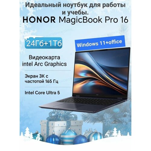 Экран ноутбука Magic Book Pro 16 обладает яркой и насыщенной цветопередачей благодаря технологии IPS. В отличие от OLED-дисплеев, IPS-экран обеспечивает более естественные цвета при ярком освещении, что делает Honor MagicBook универсальным для различных условий использования.