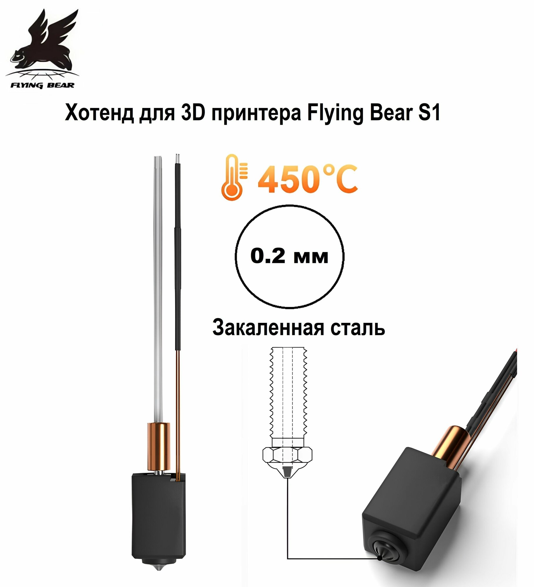 Хотенд для 3D принтера Flying Bear S1, сопло 0.2 мм из закаленной стали. Hotend для Flying Bear S1.: сравнение цен, характеристики, фото, актуальное наличие и цены.