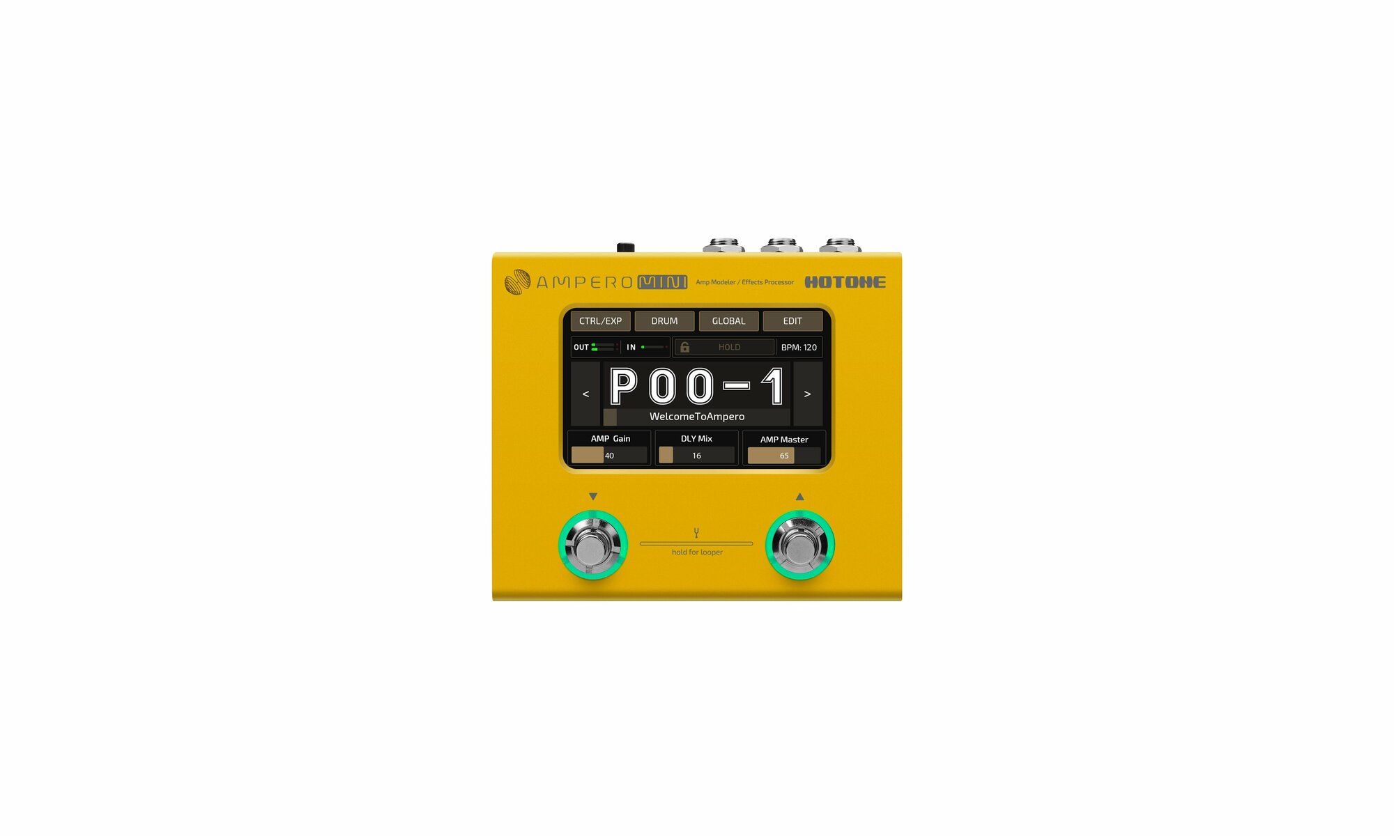 Ampero Mini самая миниатюрная модель в семействе процессоров Ampero, предлагающая бескомпромиссный звук Ampero в сверхкомпактном алюминиевом корпусе. В нем есть все необходимое: потрясающий арсенал эффектов и поддержка IR-импульсов сторонних производителей. Набора основных входов и выходов более чем достаточно для повседневного использования, а сенсорный экран и интуитивно понятный пользовательский интерфейс обеспечивают легкую и простую работу с устройством. Ampero Mini располагает отличными характеристиками по доступной цене, что особенно подойдет музыкантам, которые хотят познакомиться со звуком процессоров Ampero, новичкам с ограниченным бюджетом, сессионным музыкантам, которым нужен ультракомпактный гитарный процессор с профессиональным звуком, и даже опытным исполнителям, использующим функционал моделирования усилителей. Калейдоскоп цветов, калейдоскоп звуков Ampero Mini доступен в 6 вариантах цвета корпуса: ванильном, оранжевом, золотом, пурпурном, зеленом и горчичном. Крошечное решение для безграничного воображения Портативный размер и мощная технология моделирования CDCM HD + F.I.R.E. идеально сочетаются друг с другом в Ampero Mini. Это самая маленькая педаль эффектов, которая гарантирует полное впечатление от использвания процессоров Ampero. CDCM HD + F.I.R.E. В прошлом цифровые процессоры эффектов подвергались критике со стороны публики за то, что они создают скучный, безжизненный звук. Компания HOTONE стремится побороть этот стереотип и прилагает все усилия, чтобы процессор звучал аутентично и действительно ощущался также, как настоящий усилитель. Основываясь на десятилетиях исследований и огромной практике в области алгоритмов цифрового моделирования, команда Hotone разработала безупречную технологию моделирования CDCM HD + F.I.R.E, комбинацию технологий моделирования white box и black box. Эта технология моделирует каждый компонент оригинального устройства, создавая модель, которая отслеживает динамические вариации входного сигнала инструмента, что увеличивает возможность воспроизведения точных звуковых характеристик моделируемого объекта и обеспечивает более динамичное и глубокое звучание с быстрым тональным откликом. Профессиональные музыканты со всего мира, принявшие на вооружение эту технологию, в восторге от того, насколько невероятно реалистичной становится живая игра. Вся характер звучания Ampero в мощном двойном DSP-процессоре Ampero Mini оснащен двухъядерной платформой цифровой обработки сигналов, которая имеет производительность наравне с обычной версией Ampero и обеспечивает подлинное фирменное звучание серии Ampero. Главный процессор серии NXP RT предназначен для обработки звука. Благодаря высокой тактовой частоте этот процессор имеет более высокую производительность по сравнению с DSP-чипами Analog Devices SHARC, которые используются в обычных устройствах Ampero, что упрощает работу сразу с несколькими высококачественными алгоритмами эффектов. Сопроцессор серия NXP RT не только помогает обрабатывать аудиопотоки, но также обеспечивает работу сенсорного экрана, обработку USB-аудио и выполняет другие функции. Первоклассный сенсорный дисплей В Ampero Mini работа с сенсорным экраном расширена с помощью дополнительных жестов быстрой прокрутки и пошагового переключения каждого из параметров. Настоящее звучание Ampero - 199 эффектов - Более 100 моделей усилителей/кабин