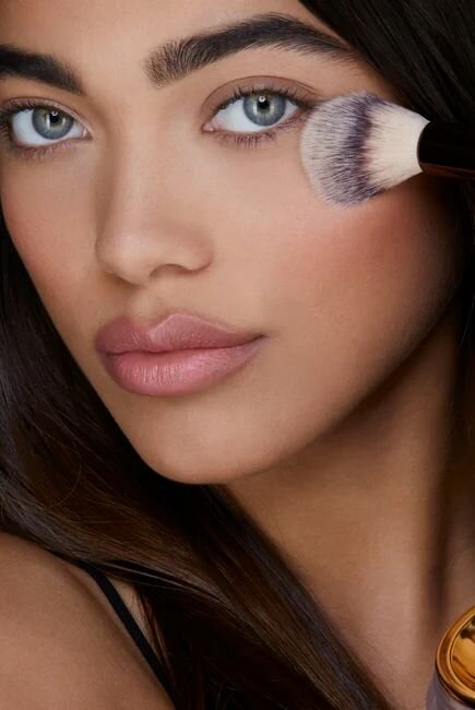 Кисточкой для пудры Veil наберите небольшое количество пудры и стряхните излишки. Нанесите пудру по всему лицу, чтобы закрепить макияж.