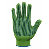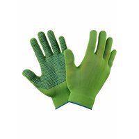 Рабочие нейлоновые зелёные перчатки с силиконовым покрытием из линейки Фабрики перчаток. Перчатки рабочие обладают высокой тактильной чувствительностью за счет вязки высокого класса 15 петель на дюйм. Тонкие и эластичные, предназначены для высокоточных работ, работы с мелкими деталями, а также сборочных работ, где требуется длительное ношение перчаток, они легкие, почти не ощущаются во время работы. Бесшовная нейлоновая основа не вызывает на руках раздражений и покраснений, так как нейлон гипоаллергенный материал (хоть и является синтетикой), а кожа в таких перчатках отлично дышит и не преет. Перчатки нейлон Фабрика Перчаток имеют силиконовое покрытие (силиконовый гель) препятствует быстрому истиранию, увеличивая срок эксплуатации нейлоновых перчаток, а также улучшает сцепление с предметами и препятствует их выскальзыванию из рук.