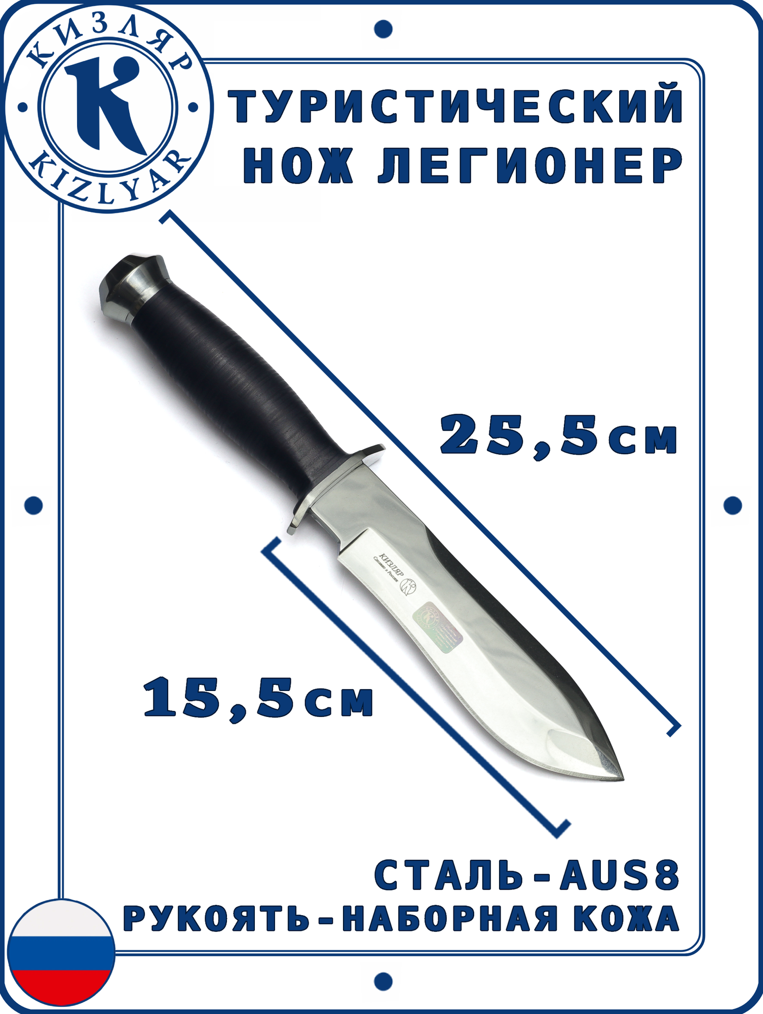 Хозяйственный нож Легионер Кизляр, Cталь: AUS-8, Рукоять: Наборная кожа; Сталь: сравнение цен, характеристики, фото, актуальное наличие и цены.