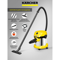 | В комплекте | насадка для ламината и паркета, насадка для мягкой мебели, насадка для прочистки сифонов и труб, насадка для твердых покрытий мебели, угловая насадка, удлинительная трубка/шланг, универсальная насадка для влажной уборки, универсальная насадка для сухой уборки, щелевая насадка, насадка для пола |