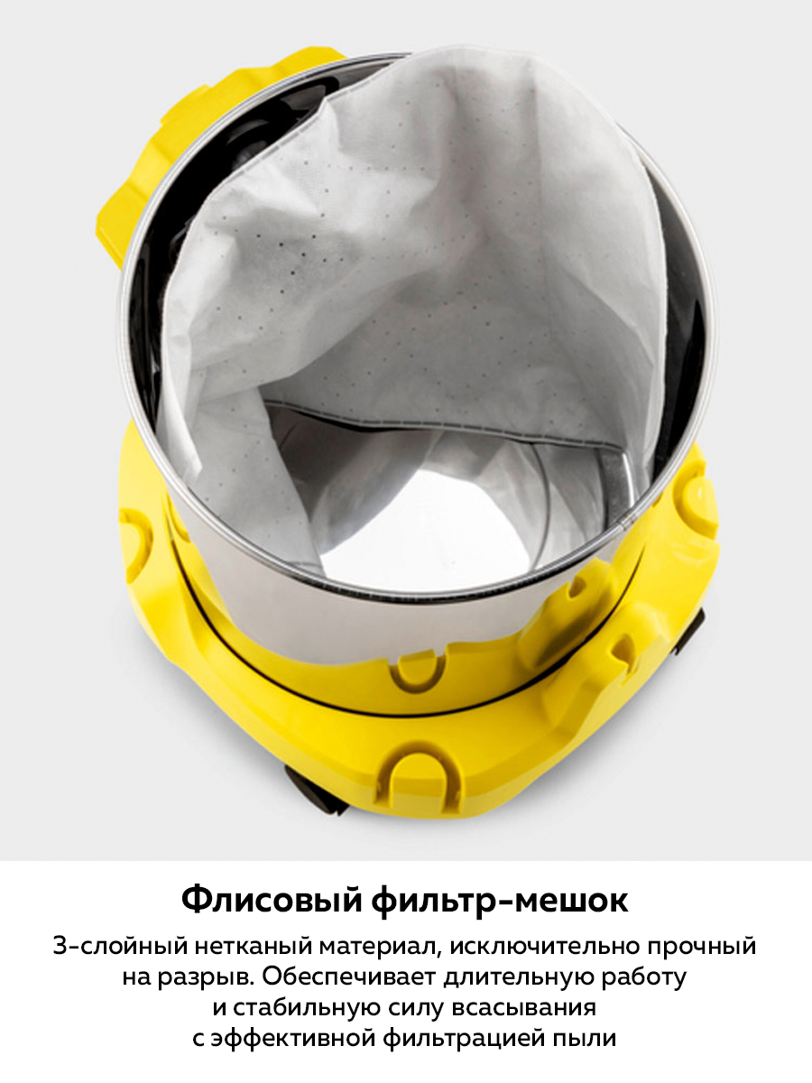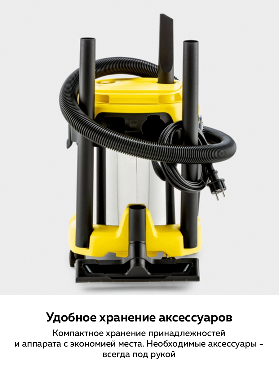 | Особенности конструкции | вертикальная парковка, индикатор заполнения пылесборника, место для хранения насадок, ножной переключатель вкл./выкл., регулятор мощности на корпусе, розетка для электроинструмента |