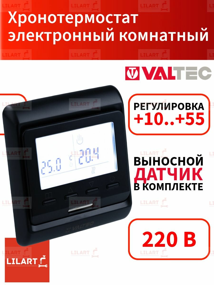 Купить Хронотермостат электронный комнатный с датчиком температуры пола (черный) с доставкой по всей России. Хронотермостат электронный комнатный с датчиком температуры пола (черный): сравнение цен, характеристики, фото, актуальное наличие и цены.