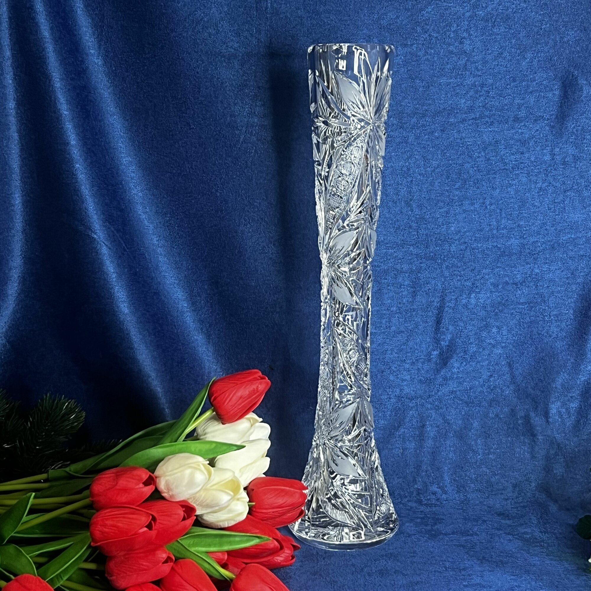 Подойдёт для живых цветов или сухоцветов. Ваза выполнена полностью из хрусталя и прекрасно впишется в ваш интерьер. В лучах солнечного света хрустальная ваза будет давать яркие цветные блики.