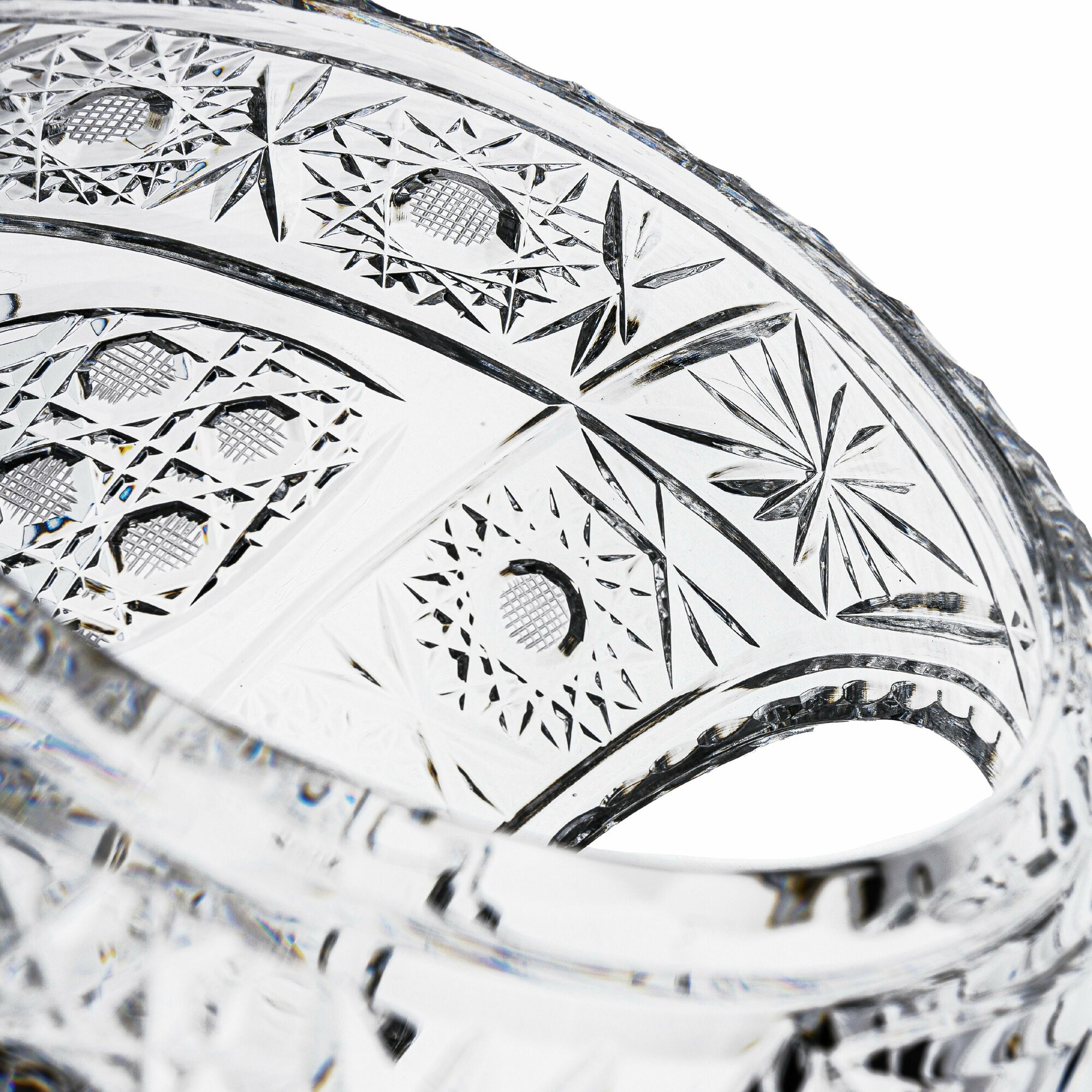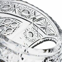 Хрустальная ваза Корзинка для конфет и фруктов производства Бахметьевского хрустального завода на столе добавит атмосферу уюта, эффектно гармонируя с интерьером праздничного и обеденного стола. Внешняя сторона конфетницы, фруктовницы декорирована мелкой резьбой. Алмазная грань покрывает практически всю поверхность ёмкости. Благородство натурального материала, глубина цвета и пространство творчества подчеркнет основные интерьерные акценты и наполнит ваш дом уютом. Ваза для сладостей добавят пространству объем и станут оригинальным украшением кухни и гостиной, а также станет отличным подарком на Новый год или день рождения, юбилей или 8 марта, Рождество или свадьбу. Фруктовница идеально подходит для изысканной подачи фруктов, кондитерских изделий, снеков. Хрустальной вазой можно порадовать близких — это универсальный полезный подарок для девушки или коллеги, мамы или сестры, для жены или любимой и просто ценителей красивых, элегантных вещей. Изделие имеет высоту 19 см, диаметр 18 см. Хрустальная ваза для фруктов и конфет изготовлена на Бахметьевском заводе из высококачественного хрусталя, она не потускнеют, не пожелтеет и не поцарапаются со временем. Элегантная конфетница полностью выполнена вручную от выдува до резки русскими стеклодувами и художниками. Вазы Бахметьевского хрустального завода отличает прозрачность и уникальный блеск при солнечном свете. Рекомендована только ручная мойка с использованием мягких губок и полотенец, для сохранности изделия. Доставляется в брендированной коробке, надежно упаковывается в пузырьковую пленку и гофрокартон.