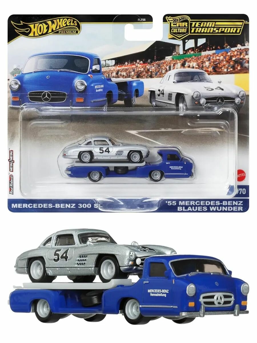 HRV48 Hot Wheels Premium Car Culture машинка металлическая игрушка коллекционная масштабная модель премиальная Team Transport Mercedes-Benz 300 SL & 55 Mercedes-Benz Blaues Wunder 2 шт.