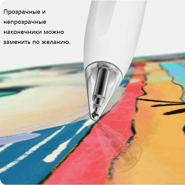Наконечники стилуса имеют белый и прозрачный цвета, позволяя вам выбрать наиболее подходящий вариант в зависимости от ваших предпочтений.