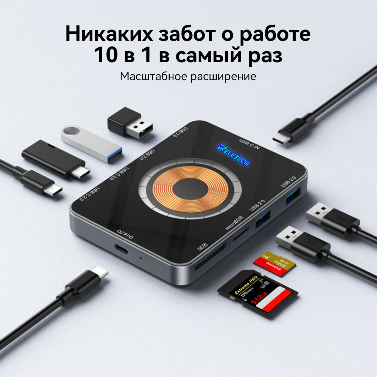 HUB Концентратор USB — C 10 в 1 / USB 3.0, USB 2.0×3, , USBC 2.0×2,microSD — карты, SD — карты, интерфейс C — PD для зарядки MacBook Pro / Air до 100 Вт с беспроводной зарядкой: сравнение цен, характеристики, фото, актуальное наличие и цены.