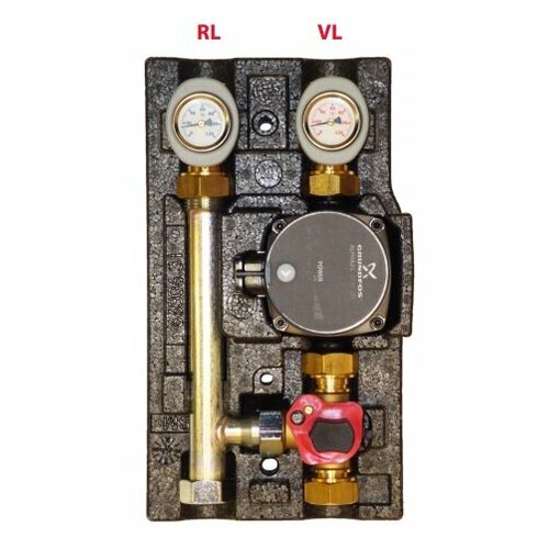 | Комплектация | циркуляционный насос (или посадочное место под насос с базой 130 мм) с кабелем, три отсечных шаровых крана, обратный клапан, два контактных термометра, патрубок обратной линии, EPP-изоляция, настенное крепление |