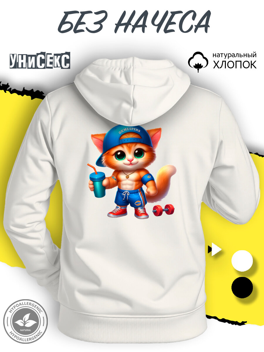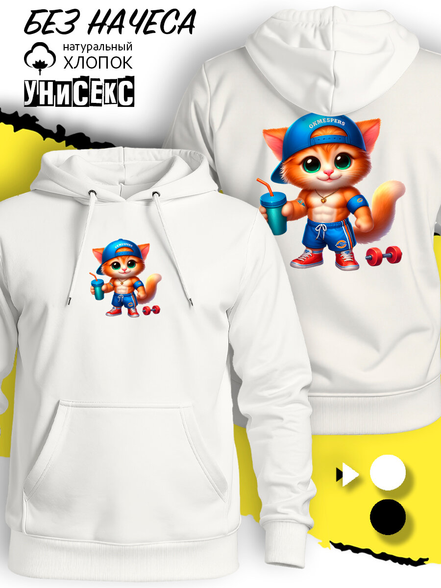 Купить Худи SMAIL-P Толстовка свитшот с котом спортсменом, размер XXL, , белый с доставкой по всей России.