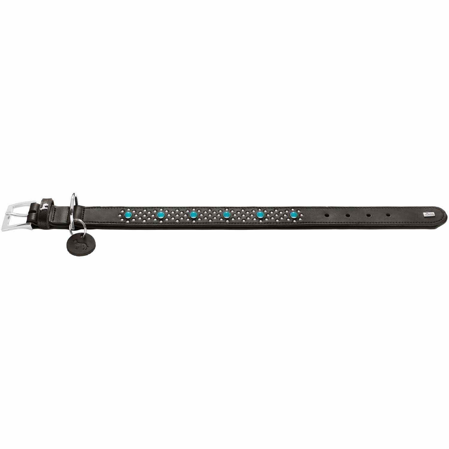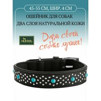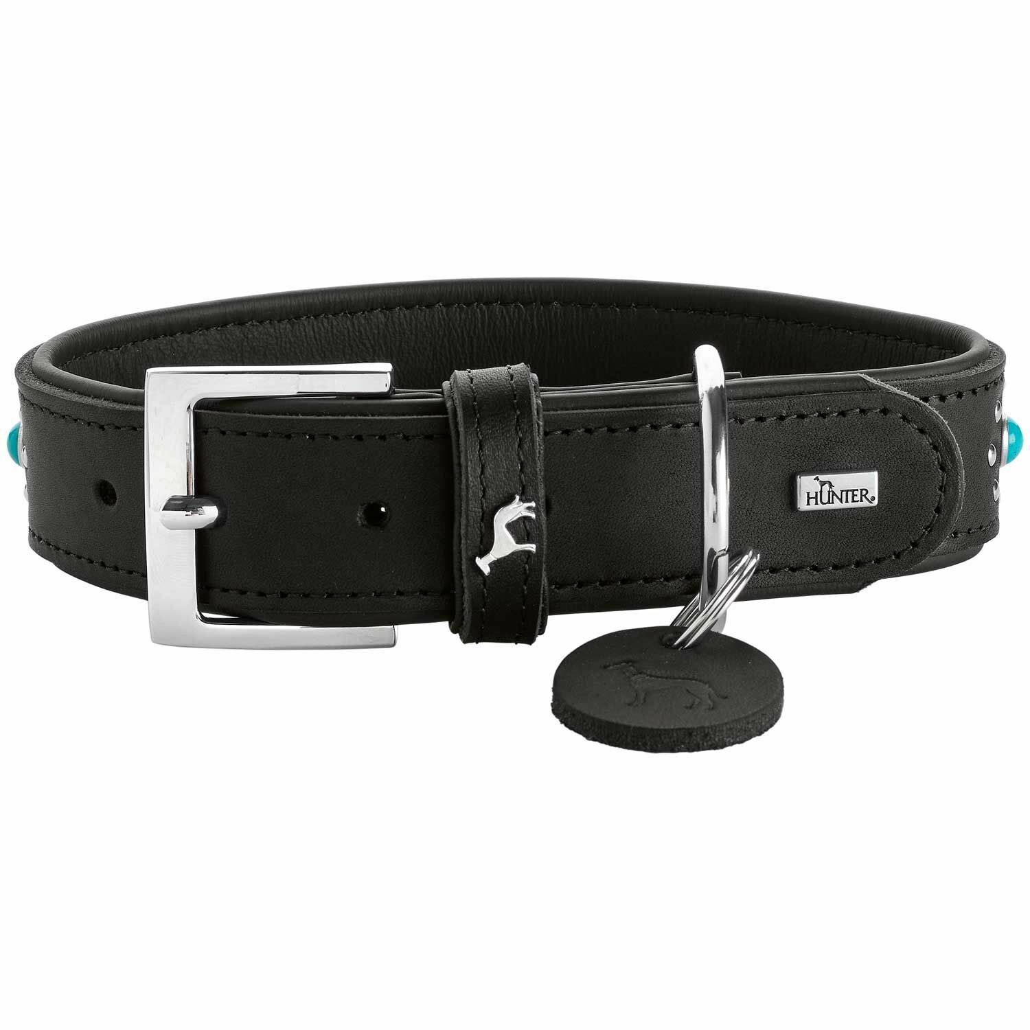 Купить Hunter ошейник для собак Madona, натуральная кожа, цвет черный, фурнитура с имитацией бирюзы, 45-55 см, ширина 4 см с доставкой по всей России.