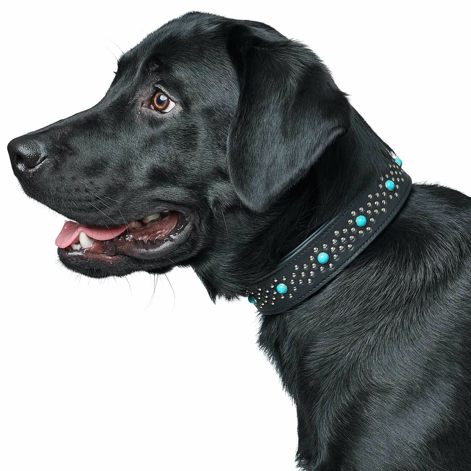 Hunter ошейник для собак Madona, натуральная кожа, цвет черный, фурнитура с имитацией бирюзы, 45-55 см, ширина 4 см: сравнение цен, характеристики, фото, актуальное наличие и цены.